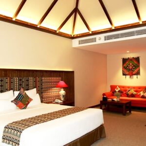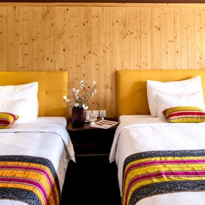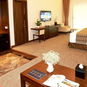 Điểm cộng của Deluxe Nature View là không gian tuy nhỏ xinh nhưng được bày trí vô cùng thoáng đãng. Serena Resort dành riêng cho bạn một ban công thơ mộng giữa núi rừng Tây Bắc, chắc chắn bạn không thể bỏ lỡ cảm giác thư giãn uống trà trong buổi sớm mai, cùng người ấy chuyện trò, ngắm nhìn dòng sông Bôi lững lờ. Hãy ghé Serena, đặt một căn Deluxe Nature View, để được thức dậy ở một nơi xa, trong làn gió mát lạnh, để tâm hồn ta được thư thái, dễ chịu sau những bộn bề của cuộc sống thường ngày.