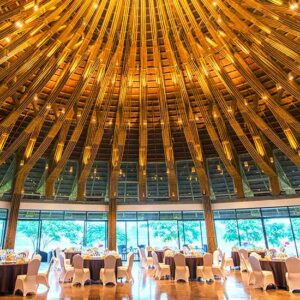 Nhà hàng Nón khổng lồ – Điểm nhấn, nét chấm phá độc đáo trong tổng thể kiến trúc của Serena Resort Kim Bôi. Lấy cảm hứng từ hình ảnh chiếc nón lá truyền thống gắn liền với vẻ đẹp bình dị mang đậm chất thôn quê của người phụ nữ Việt Nam, nhà hàng Nón gây ấn tượng mạnh với du khách trong và ngoài nước không chỉ bởi thiết kế độc đáo mà còn bởi cái “hồn quê Việt” được thổi vào một công trình vĩ đại.