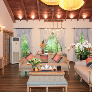 Với diện tích lên đến 180 m2, Onsen Villa là lựa chọn tuyệt vời cho cả gia đình hoặc nhóm bạn 04 người quây quần bên nhau trong một kỳ nghỉ trọn vẹn. Căn Onsen Villa được thiết kế theo dạng chữ U, phòng khách chung nằm giữa 02 phòng ngủ; tận dụng tối đa không gian mở, mang đến cảm giác thoáng đãng mà vẫn gần gũi. Sở hữu bể bơi riêng biệt hiện đại, biệt thự thích hợp với các gia đình hay những nhóm khách hàng yêu thích không gian riêng tư. Onsen Villa là nơi lý tưởng để cả gia đình nghỉ ngơi, thư giãn, sẻ chia khoảng khắc hạnh phúc và là nơi giúp bạn phục hồi lại nguồn năng lượng tích cực sau những bộn bề lo toan của cuộc sống.
