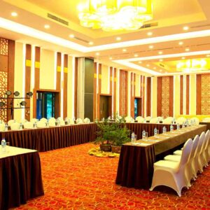 Khu hội thảo Ballroom với diện tích 370 m2, sức chứa tối đa 300 khách, là sự lựa chọn lý tưởng cho những buổi họp báo, hội thảo, họp lớp… Đặc biệt, Ballroom còn có thể tách làm hai phòng riêng biệt, tạo không gian phù hợp cho các cuộc họp quy mô nhỏ từ 50-80 khách.